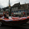 "Hochzeitskutsche mal anders": Melanie und Christian Kottmann wurden von ihren DLRG-Kameraden per Schlauchboot durch Cronenberg "kutschiert".