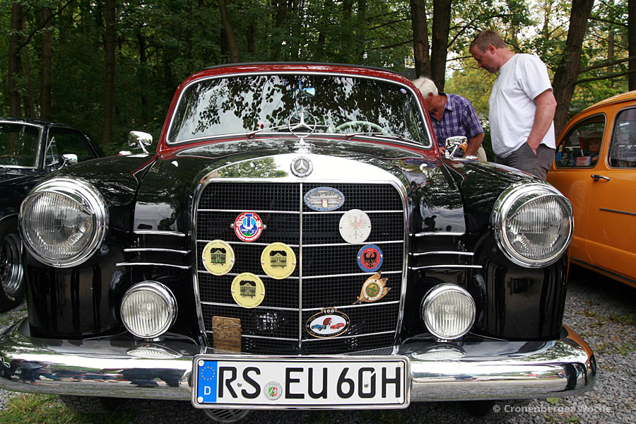 Star des Tages war Siegfried Oberschewen mit seinen Mercedes 170V: Das 1949 gebaute Militärfahrzeug sah aus, als käme es direkt von der Front. Flüchtlinge hatten das Fahrzeug auf ihrer Flucht von der Ostfront bis zum Bodensee genutzt. Dort stieß der Bochumer dann in einer Scheune auf das historische Gefährt und machte es wieder fahrtauglich.