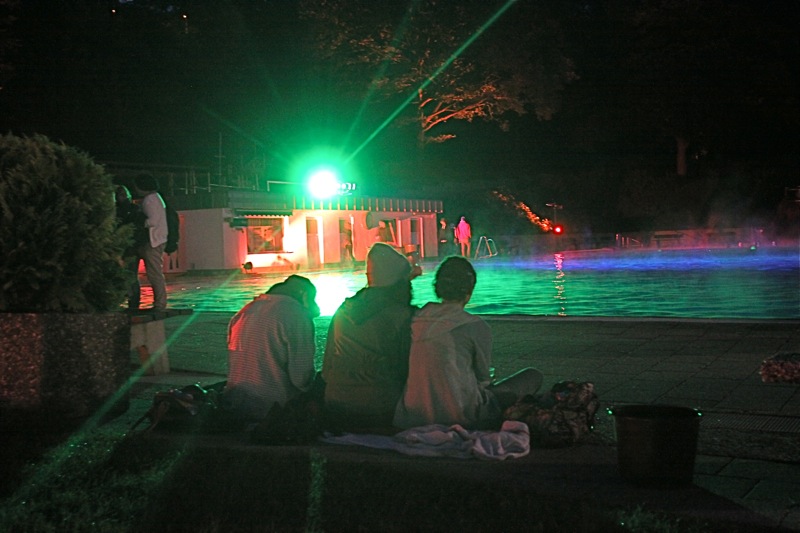 „Na ja…wären die gefühlten 100 Mann, die nur vor der Tür standen und schauten, ob jemand da ist, reingekommen, wäre es sicher lustiger geworden“, lautet ein Facebook-Eintrag zum „Superbaden“ am gestrigen Samstag, 15. September 2012: „Aber sie schauten und gingen…selber schuld.“ Das trifft den Nagel auf den Kopf: Die Freibad-Party des U-Club und des SV Neuenhof im Rahmen des Event-Marathons „Wuppertal 24h live“ war ein Schlag ins Wasser. Aber sie fiel nicht ins Wasser, ganz im Gegenteil: Das Cronenberger Freibad war durch Scheinwerfer stimmungsvoll in Szene gesetzt und 29 Grad Wassertemperatur vorbereitet – obwohl sich allein via Facebook über 400 „Follower“ für die Freibad-Party angemeldet hatten, blieb die Zahl der Cubberer am Beckenrand beziehungsweise im beheizten Wasser aber ziemlich überschaubar.