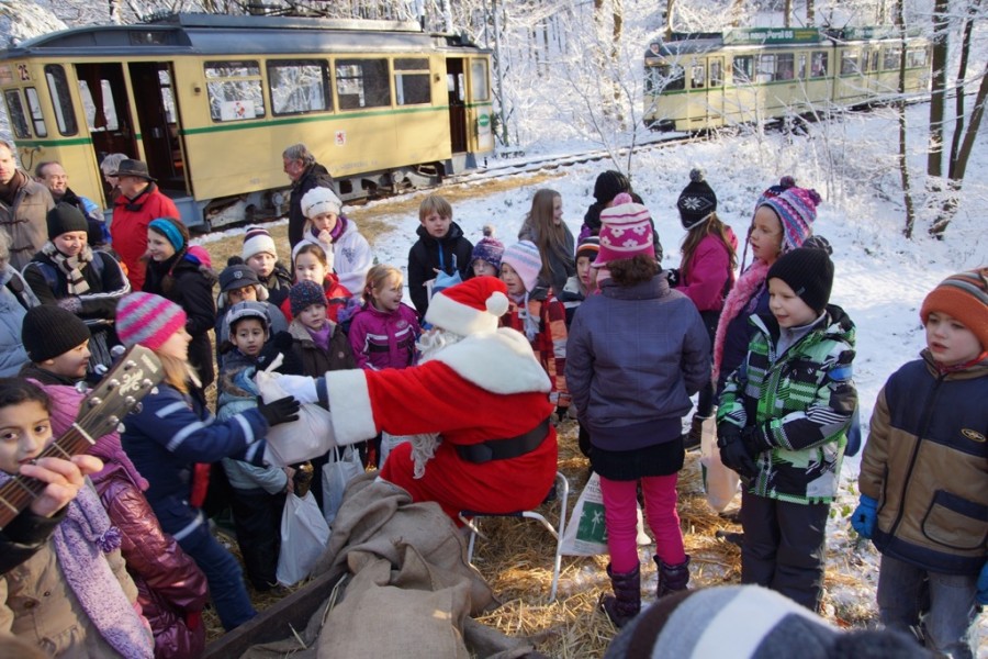 Historische Straßenbahnen, Technik zum Anfassen – das ließ am vergangenen Samstag, 8. Dezember 2012, so manche Kinderaugen strahlen. Doch das Highlight wartete auf halber Strecke: Im Kaltenbachtal überraschte der Nikolaus die jungen Gäste, die angereist kamen – natürlich per Straßenbahn! Seit bereits 21 Jahren bieten die Kohlfurther Bahn-Freunde die jährlichen Nikolausfahrten an – so auch am letzten Wochenende, dem 8. und 9. Dezember 2012. „Wir haben für beide Tage 620 Anmeldungen“, freute sich Thomas Wächter über den anhaltenden Zuspruch zu der BMB-Aktion.