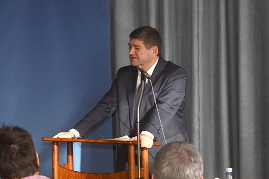 Nach einem weiteren musikalischen Intermezzo mit Heinz Brust am Klavier schritt Josef Neumann ans Rednerpult. Der SPD-Landtagsabgeordnete rief einen der bedeutenden Jahrestage 2014 in Erinnerung: Dass sich der Beginn des 1. Weltkrieges in diesem Jahr zum einhundertsten Male jährt, müsse dazu ermuntern, alles für die weitere europäische Eingung zu tun. Die EU beschäftige sich nicht nur mit Gurkengrößen, wie oftmals an den Stammtischen propagiert. Die EU, so Neumann, stehe auch für Meinungs- und Pressefreiheit, für Wohlstand und sie unterstütze auch den Strukturwandel in Wuppertal mit Fördermitteln.