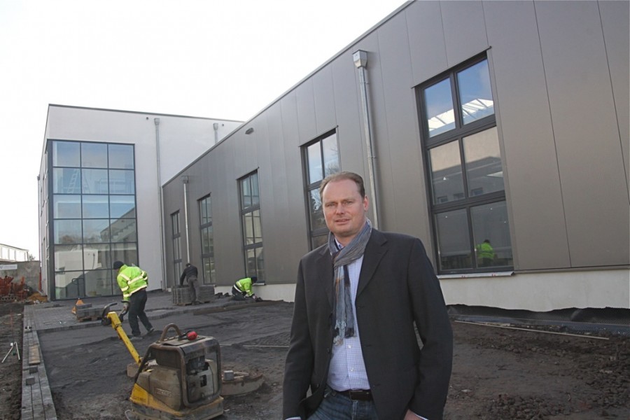Die Gebäude sind kaum wiederzuerkennen: Inhaber Alexander Holtmann vor einem Abschnitt des fast fertigen Gewerbeparks Unterkirchen, der vor rund zwei Jahren in großen Teilen völlig zerstört wurde.