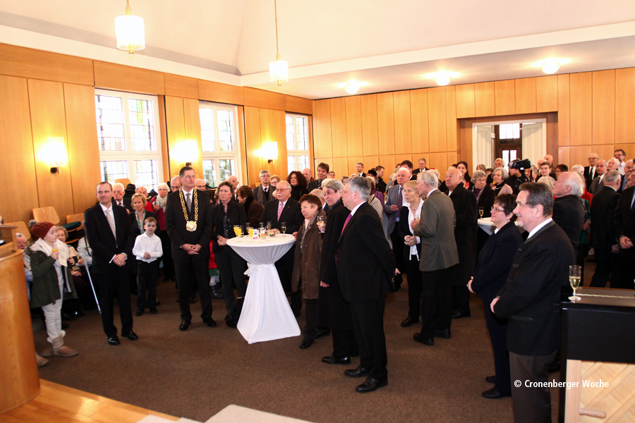 So berichtete Oberbürgermeister Peter Jung, der im Anschluss an den Festgottesdienst im Rahmen eines Empfangs den Verdienstorden an Helmut Pathe überreichte. Wie der OB erläuterte, hatte dieses Novum zuvor die Amtsstuben beschäftigt: „Das wissen wir nicht, aber das gab’s noch nie“, lautete hier die Antwort auf die Frage, ob die Ordensverleihung überhaupt außerhalb des Rathauses stattfinden dürfe. OB Jung gab dennoch eine Prüfung in Auftrag, am Ende stand fest: Verdienstorden dürfen anderswo überreicht werden – „mit dieser Frage kann man eine Verwaltung lahm legen“, lautete das Jung-Fazit.