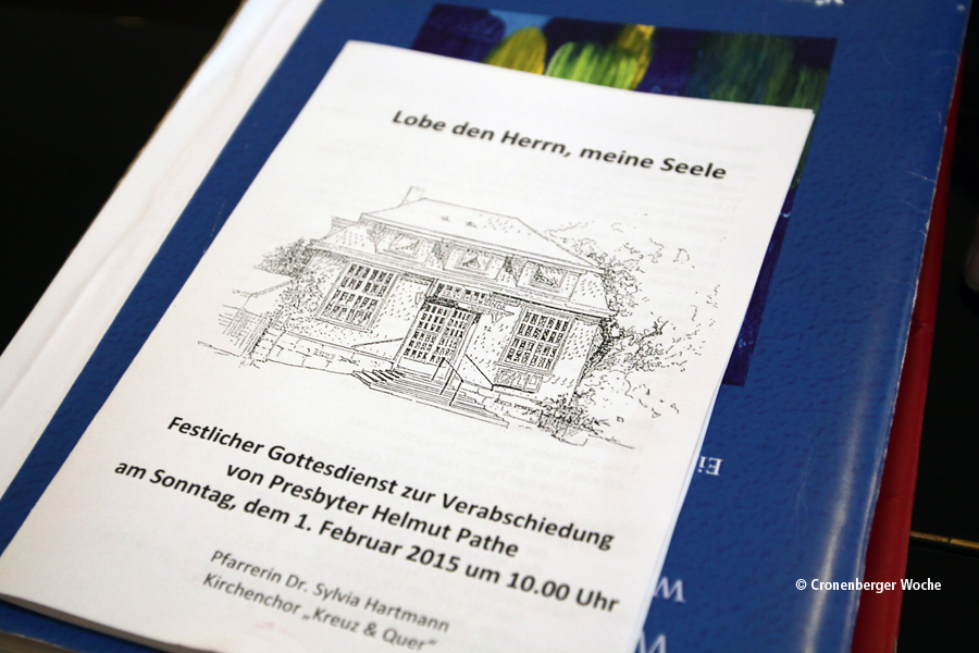 Ihm zu Ehren fand ein Festgottesdienst an der Nesselbergstraße statt. Wie bereits berichtet, schied der Friedrichsberger mit Vollendung seines 75. Lebensjahres und dem Erreichen der Altersgrenze aus dem Presbyterium der Evangelischen Gemeinde Küllenhahn aus. 31 Jahre lang war er Mitglied, seit 2008 stand Helmut Pathe der kleinsten selbstständigen Gemeinde Wuppertals als Presbyteriumsvorsitzender vor. Dass sie – trotz aller Einsparzwänge – noch immer unabhängig ist, dazu hatte Pathe zuvor mit dem damaligen Pfarrer Horst Jedan maßgeblich beigetragen. Aber Pathe wirkte nicht nur an der Gemeindespitze: Der frühere Oberstaatsanwalt leistete auch Basisarbeit, rief zum Beispiel die Gemeinde-Reihe „Kirche kreativ“ ins Leben und war und ist sich auch nicht zu schade, den Gemeindebrief auszutragen oder beim Säubern der Dachrinnen des Gemeindehauses „sein Leben zu riskieren“.