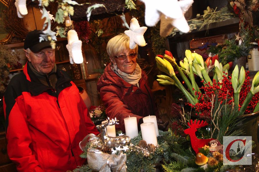 Echte Hingucker des Adventsfests waren Uschi Schartner, die bei Blumen Balewski „live“ ihre filigranen Handarbeiten klöppelte, das Spinnrad, das sich fleißig in der Pandel-Farbrik drehte und einmal mehr der mit vielen kleinen und größeren Präsentideen strotzende und von Lichterketten stimmungsvoll in Szene gesetzte Stand der „Küllenhahner Nordic-Talking-Damen“ in der Hüttemann-Halle – als es dunkel wurde, war es bei Ariane und Frank Hüttemann, aber auch in der Pandel-Fabrik und inmitten der Adventsausstellung von Gudrun Balewski, wo viele, viele Kerzen flackerten, noch einmal so heimelig.