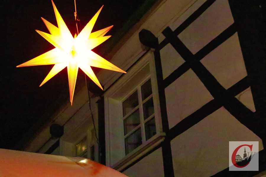Am späten Nachmittag jedenfalls schloss Petrus seine Schleusen, als es dunkelte strömten dann doch noch viele Besucher in die Gässchen zwischen TiC-Theater und CHBV-Haus und Glühwein, Eierpunsch und Winterbier sowie Reibekuchen, Bullebäuschen und Grillwürstchen gingen weg wie die berühmten warmen Semmeln. Die heimelige Atmosphäre rund um die lodernden Feuerkörbe war endgültig komplett, als Cronenberg-Herold Michael Baute schließlich zur zweiten Verkündigung der neuesten Nachrichten aus dem Dorpe schritt.