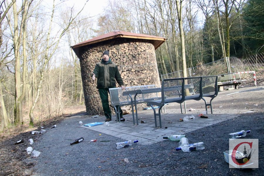 Ludwig kündigte an, dass der Bürgerverein Anzeige erstatten werde. Zudem werde man am aktuellen Zustand des Rastplatzes heute nichts verändern – damit die zahlreich vorbeikommenden Spaziergänger das „Trauerspiel“ sehen könnten. In der Tat löst der Anblick breite Betroffenheit aus: „Das ist ja traurig“, blieb zum Beispiel eine weitere Spaziergängerin stehen: „Das ist doch so ein schönes Plätzchen hier…“