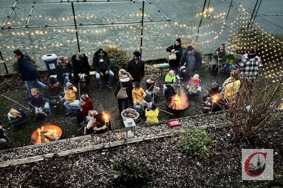 Die Frage löste sich rasch in Wohlgefallen auf: Sie fanden den Weg, und zwar zahlreich, vielleicht sogar zahlreicher denn je! Insbesondere am Abend, als die von der Event-AG des Carl-Fuhlrott-Gymnasiums stimmungsvoll illuminierten Bäume leuchteten und die YoungBand der Friedrich-Bayer-Realschule ihr weihnachtliches Platzkonzert gab, war es „kuschelig“ rappelvoll an der Nesselbergstraße 45 und Glühwein, Punsch & Co. flossen in Strömen. Die vielen, vielen Besucher zeigten sich fast einhellig vollauf begeistert von der neuen Location am Waldrand, zumal die kleinen Besucher hier zum Beispiel am Lagerfeuer Stockbrot backen konnten, das TCK-Restaurant „Satzball“ facettenreich für den Appetit sorgte und die erleuchtete Burgholz-Kulisse für eine heimelige Atmosphäre sorgten, war das „Comeback“ des Adventsfests ein voller Erfolg.